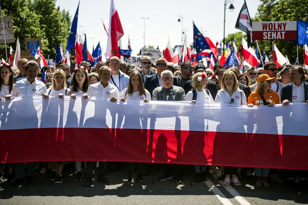 FOTO | Protest la Varşovia, cu ex-premierul Donald Tusk și fostul președinte Lech Walesa printre participanți. De ce au ieșit polonezii în stradă