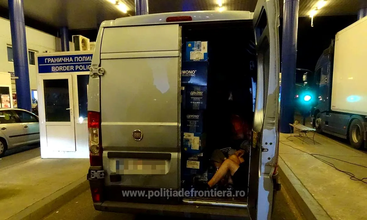 GALERIE FOTO: 25 de migranți, între care 5 copii, ascunși într-un microbuz condus de un sârb, prinși la Vama Calafat