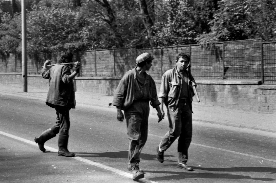 Mineri, in fata Palatului Cotroceni, in Bucuresti, 15 iunie 1990. Evenimentele din perioada 13-15 iunie 1990 au marcat o perioada de disensiuni socio-politice majore. Mineriada din iunie '90 este considerata una dintre cele mai sangeroase actiuni ale minerilor, care, alaturi de fortele de ordine, au intervenit pentru a imprastia demonstrantii, aflati de 52 de zile in Piata Universitatii. VICTOR CIUPULIGA / MEDIAFAX FOTO