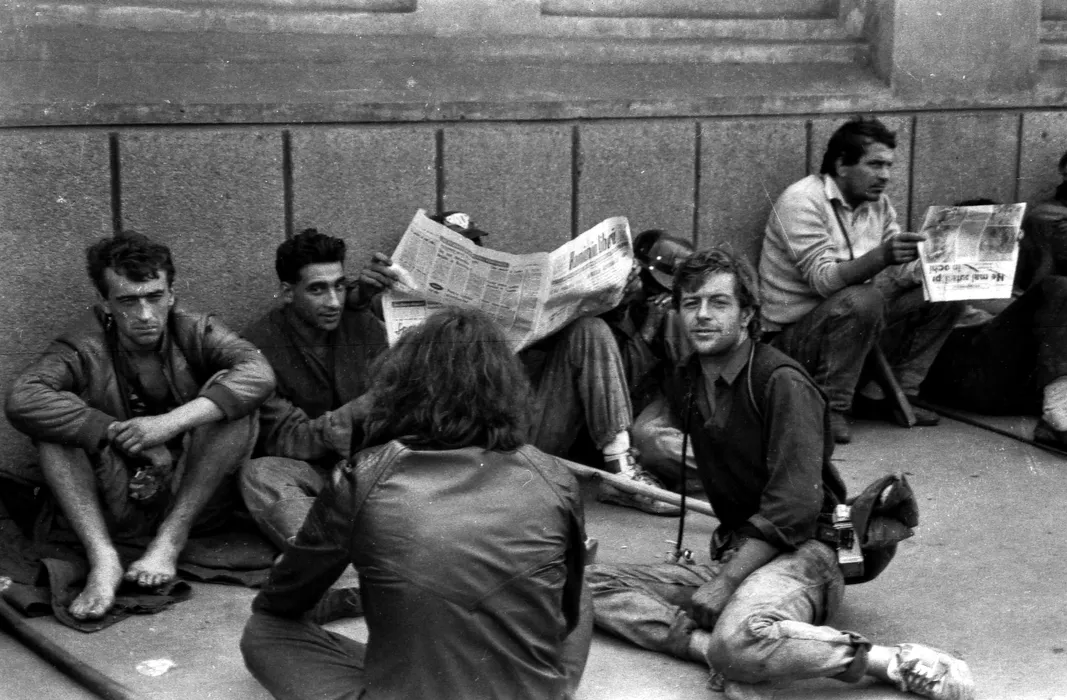 Simpatizanti ai minerilor, in fata Palatului Cotroceni, in Bucuresti, 15 iunie 1990. Evenimentele din perioada 13-15 iunie 1990 au marcat o perioada de disensiuni socio-politice majore. Mineriada din iunie '90 este considerata una dintre cele mai sangeroase actiuni ale minerilor, care, alaturi de fortele de ordine, au intervenit pentru a imprastia demonstrantii, aflati de 52 de zile in Piata Universitatii. VICTOR CIUPULIGA / MEDIAFAX FOTO