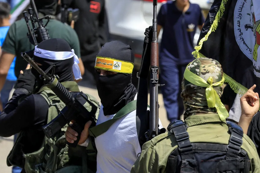 Gunmen attend the funeral of Palestinian youth Othman Abu Khurog, 17, at Zababdeh village near Jenin in the occupied West Bank, on August 22, 2023. Abu Khurog was killed when clashes erupted in Zababdeh, which Israeli forces had entered to make an arrest, the official Palestinian news agency Wafa reported. The Israeli army said in a statement that troops had opened fire after "explosive devices" were thrown at them, adding "a hit was identified".,Image: 799185996, License: Rights-managed, Restrictions: , Model Release: no