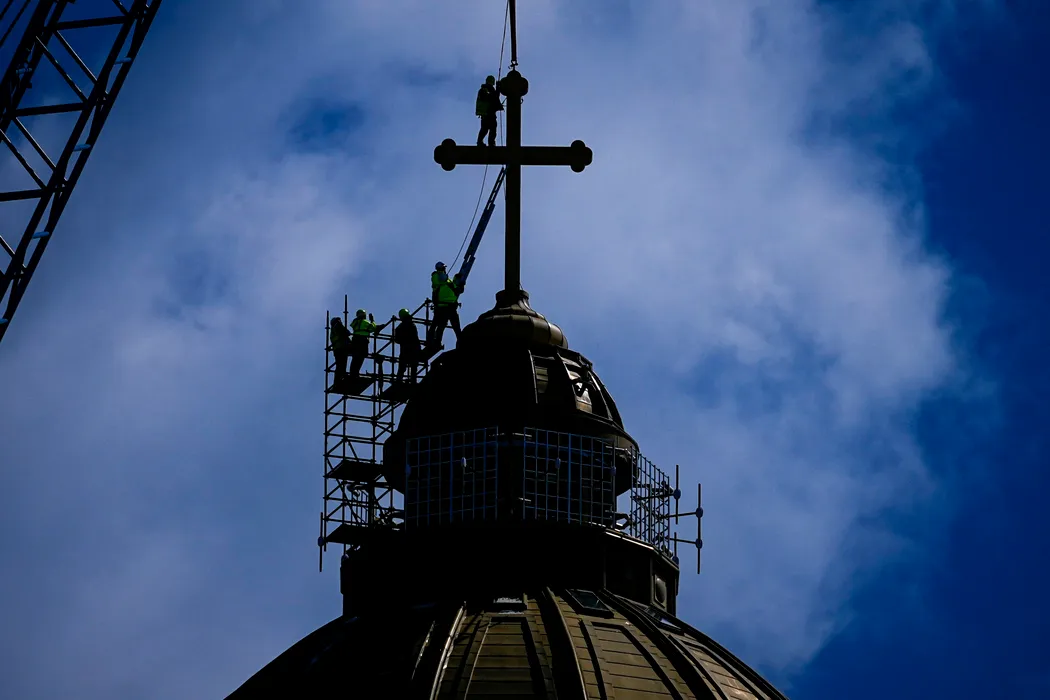 A fost montată crucea de 7 tone pe turla mare a Catedralei Neamului