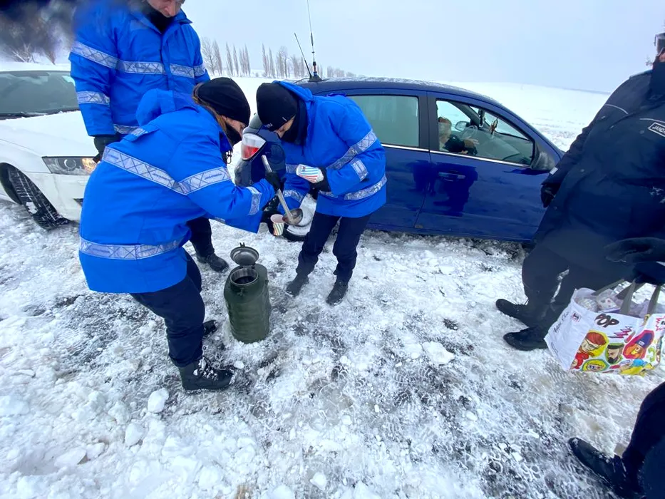FOTO-VIDEO | A fost nevoie de intervenția autorităților pentru deszăpezirea drumului E85. Peste 70 de jandarmi, alături de pompieri și polițiști au contribuit la această mobilizare