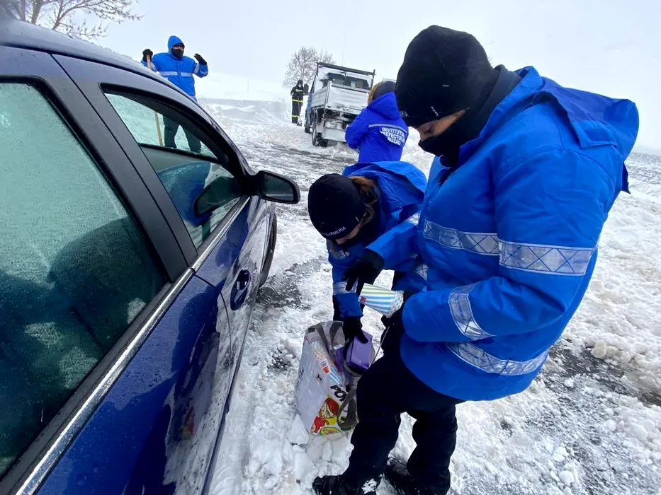 FOTO-VIDEO | A fost nevoie de intervenția autorităților pentru deszăpezirea drumului E85. Peste 70 de jandarmi, alături de pompieri și polițiști au contribuit la această mobilizare