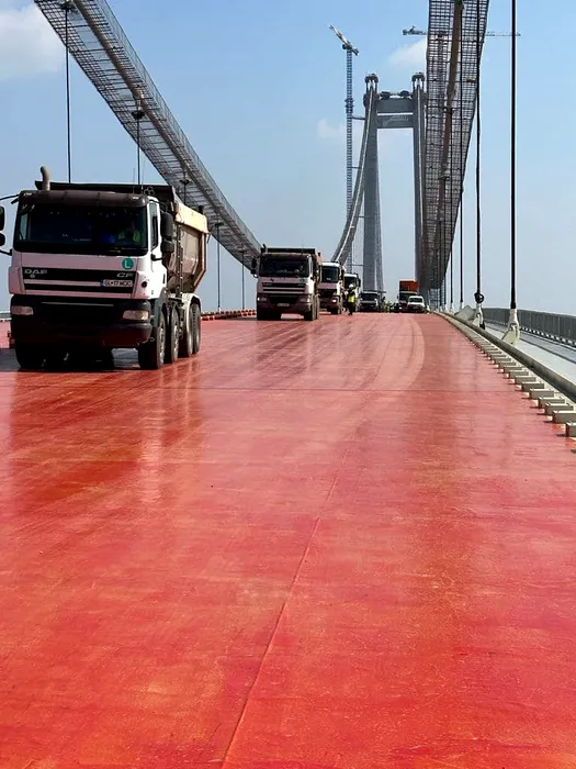 A ÎNCEPUT asfaltarea la podul peste Dunăre de la Brăila. Când se va deschide circulației (Galerie FOTO)