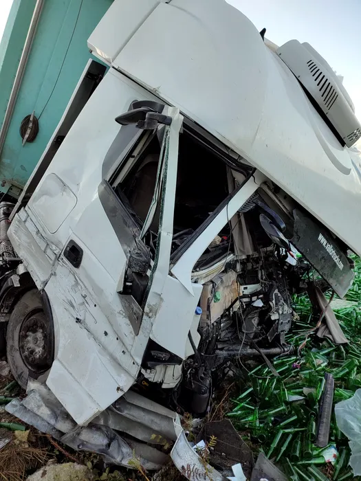 GALERIE FOTO: FOTO – VIDEO | Șoferul unui camion a murit după ce a pierdut controlul asupra volanului și a pătruns pe contrasens pe autostradă / Alte două mașini au fost avariate
