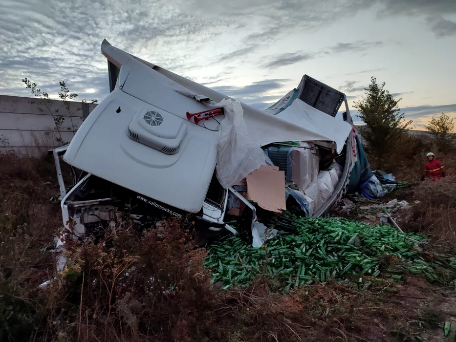 FOTO – VIDEO | Șoferul unui camion a murit după ce a pierdut controlul asupra volanului și a pătruns pe contrasens pe autostradă / Alte două mașini au fost avariate