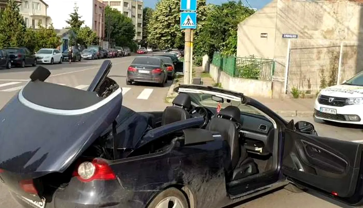 GALERIE FOTO: ACCIDENT BIZAR. Tânără în comă, după ce și-a prins capul în trapa mașinii decapotabile