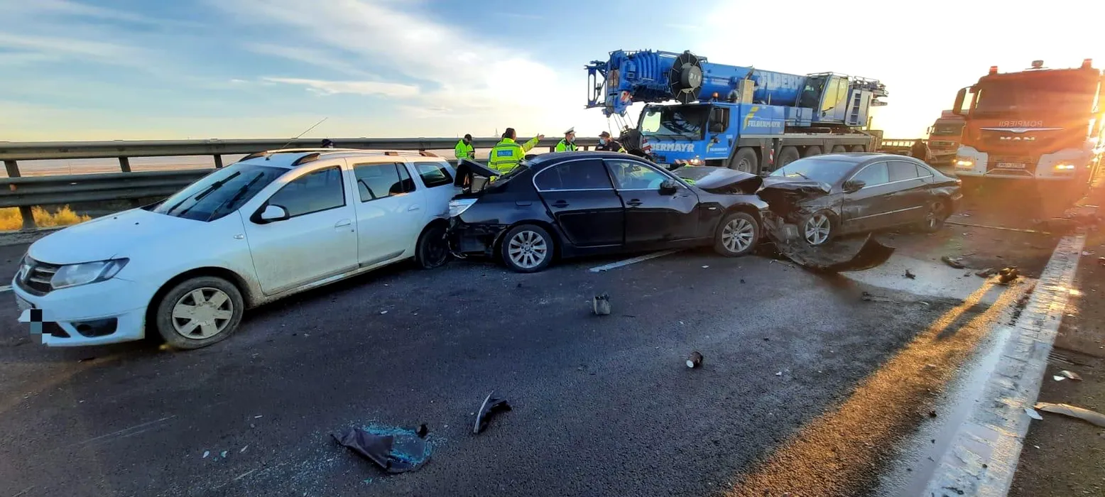 Accident cu 10 mașini implicate, pe A1 București – Pitești! Patru persoane rănite au ajuns la spital – Galerie FOTO și VIDEO