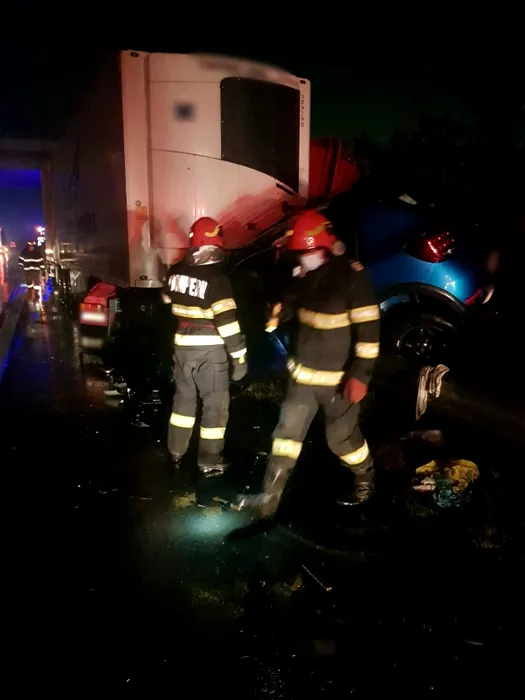 Accident cu cinci victime pe A1 în județul Giurgiu. Un autoturism și un autotren, implicate în impactul violent