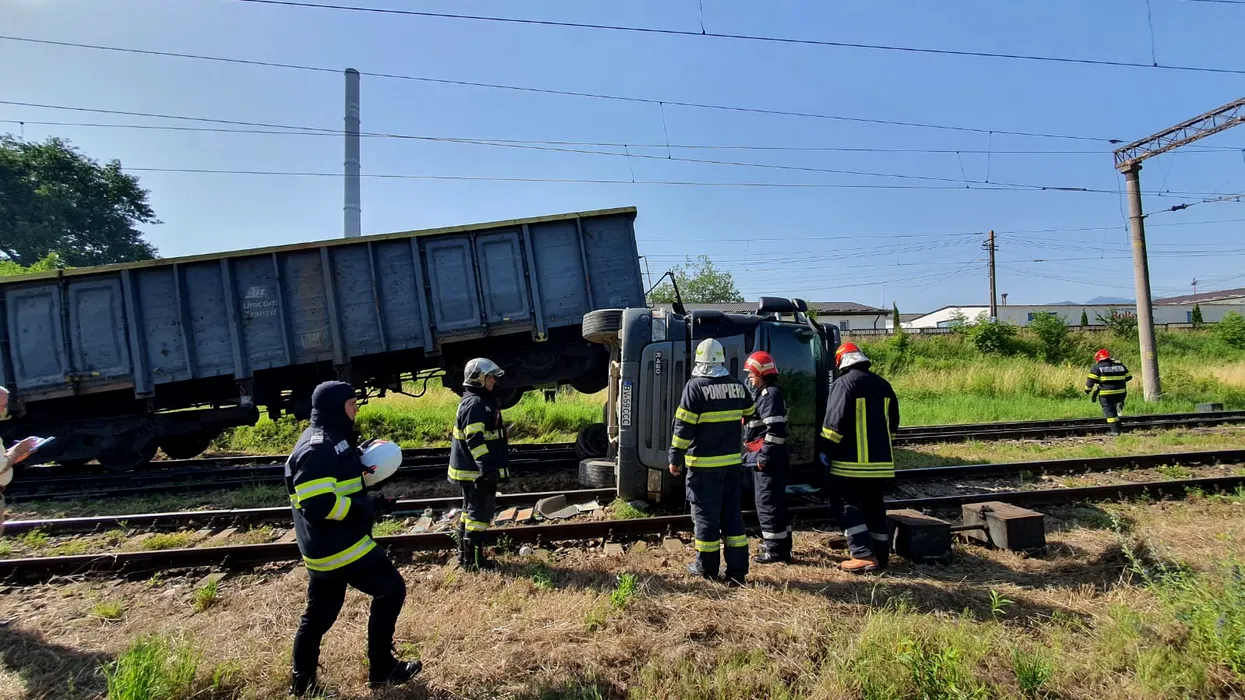 FOTO | Accident cu trei victime în Brașov: Un camion a fost lovit de tren