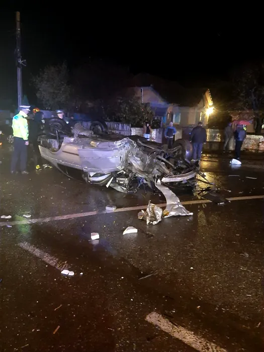 Accident cu trei victime în Gorj. Un șofer a pierdut controlul volanului și a lovit indicatorul din beton de la intrarea în Târgu Jiu