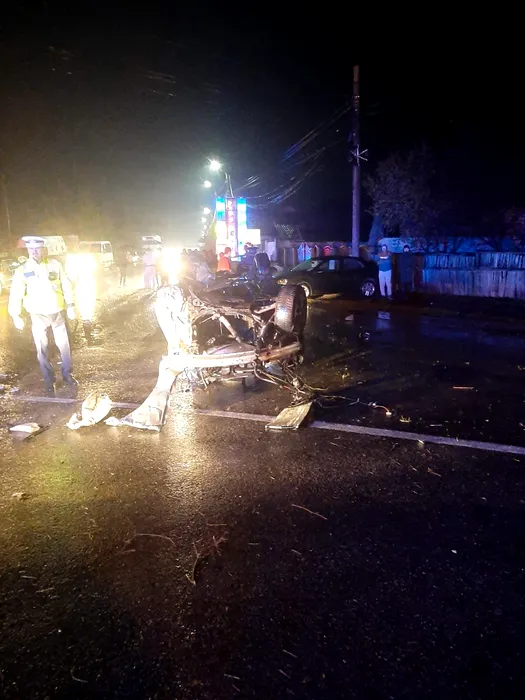 Accident cu trei victime în Gorj. Un șofer a pierdut controlul volanului și a lovit indicatorul din beton de la intrarea în Târgu Jiu