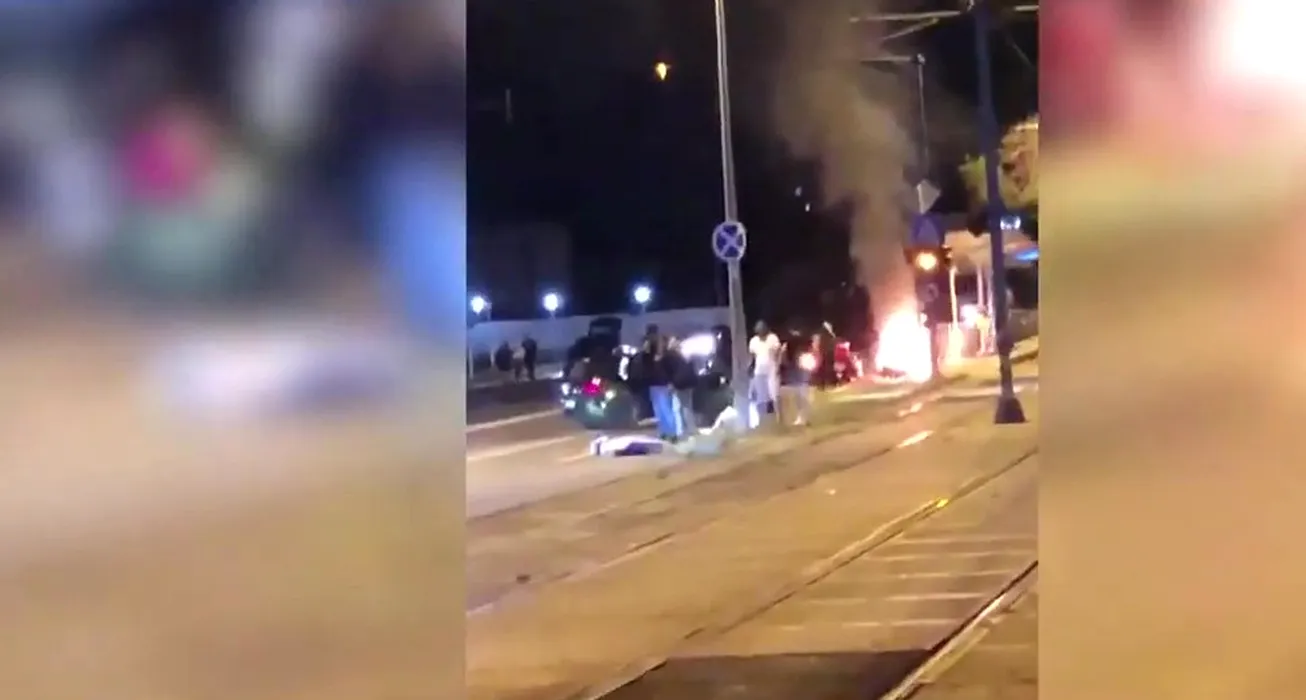 Accident cumplit în Capitală! Un motociclist a fost aruncat 10 metri în aer după impactul cu o mașină iar motorul a luat foc – FOTO