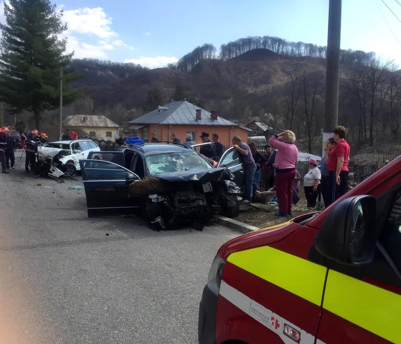 GALERIE FOTO: Accident DEVASTATOR în Vâlcea: Două persoane au murit și alte cinci au fost rănite după ce o mașină a pătruns pe CONTRASENS