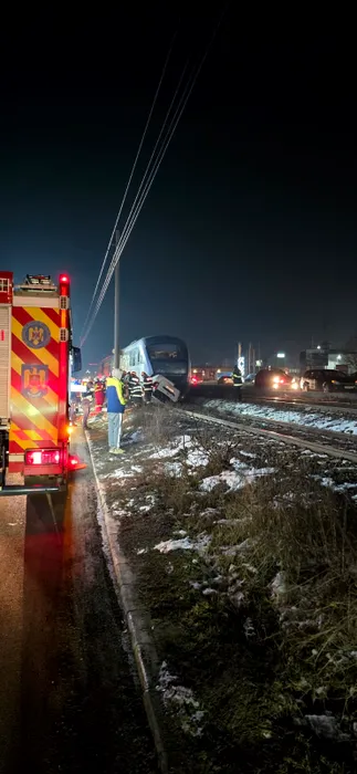 Accident feroviar grav în Chiajna. Un bărbat a rămas încarcerat după ce un autoturism a fost lovit de tren. Circulația feroviară este oprită
