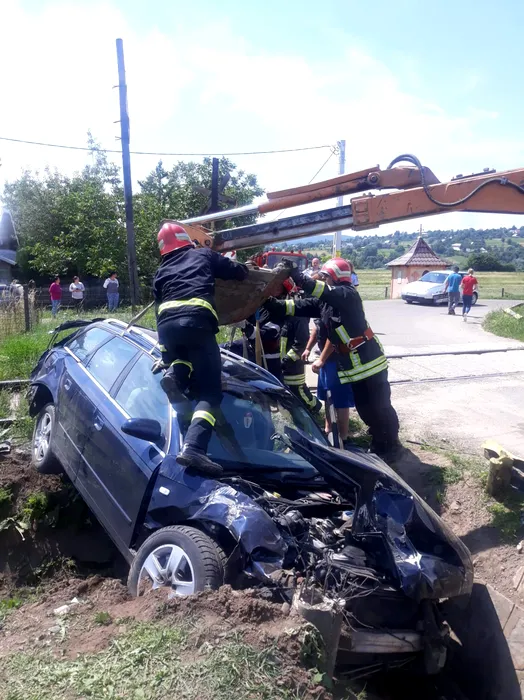 ACCIDENT FEROVIAR. Un tren din Suceava a izbit un autoturism