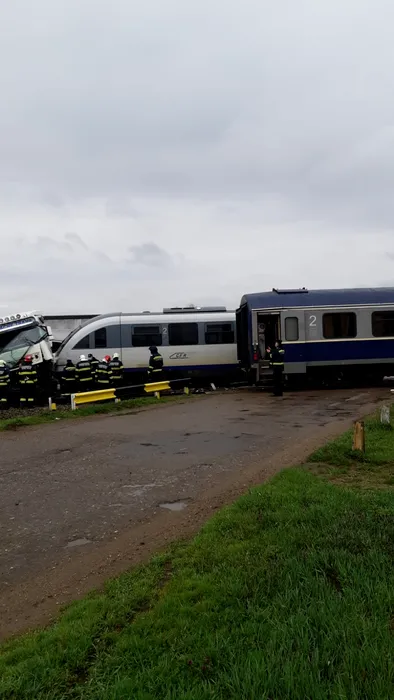 Accident feroviar în Vaslui. Un TIR a fost lovit de două trenuri (Galerie FOTO&VIDEO)