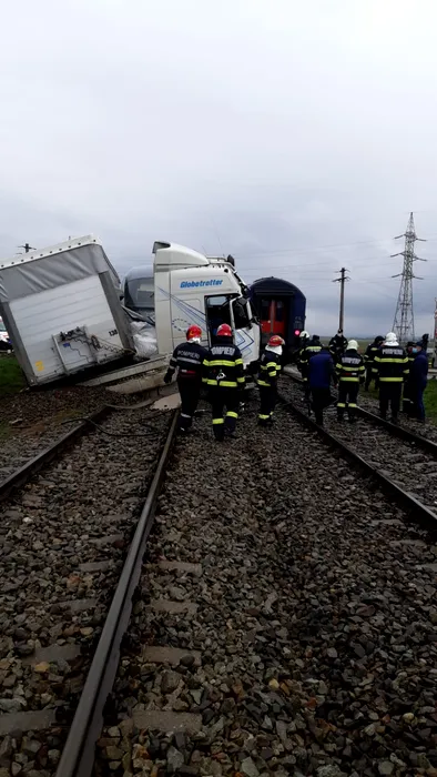 Accident feroviar în Vaslui. Un TIR a fost lovit de două trenuri (Galerie FOTO&VIDEO)