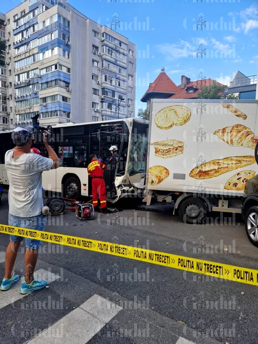GALERIE FOTO: FOTO-VIDEO: Accident grav pe Calea Dorobanți din București, în care a fost implicat un autobuz STB. Patru persoane, transportate la spital