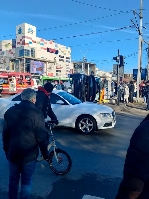 Accident grav în București, în sectorul 6. O ambulanță a fost lovită și răsturnată