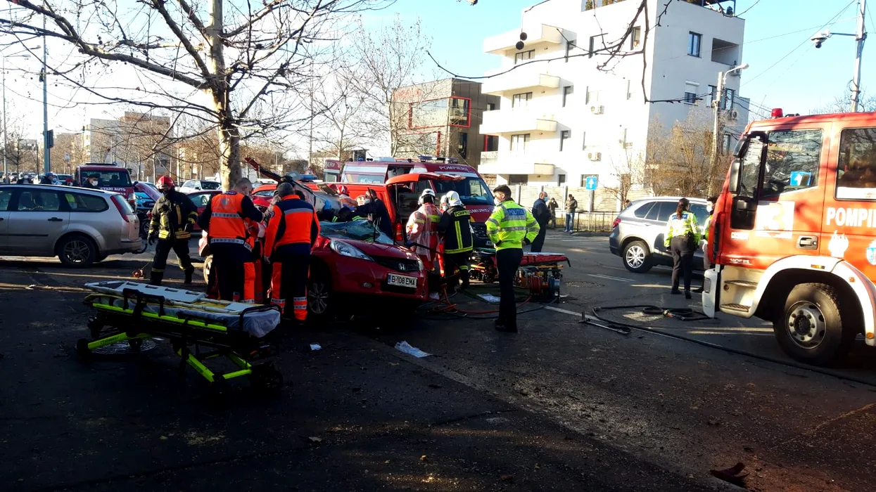 Accident grav în Capitală, se intervine pentru descarcerarea persoanelor! UPDATE: Copiii au fost transportați la spital!