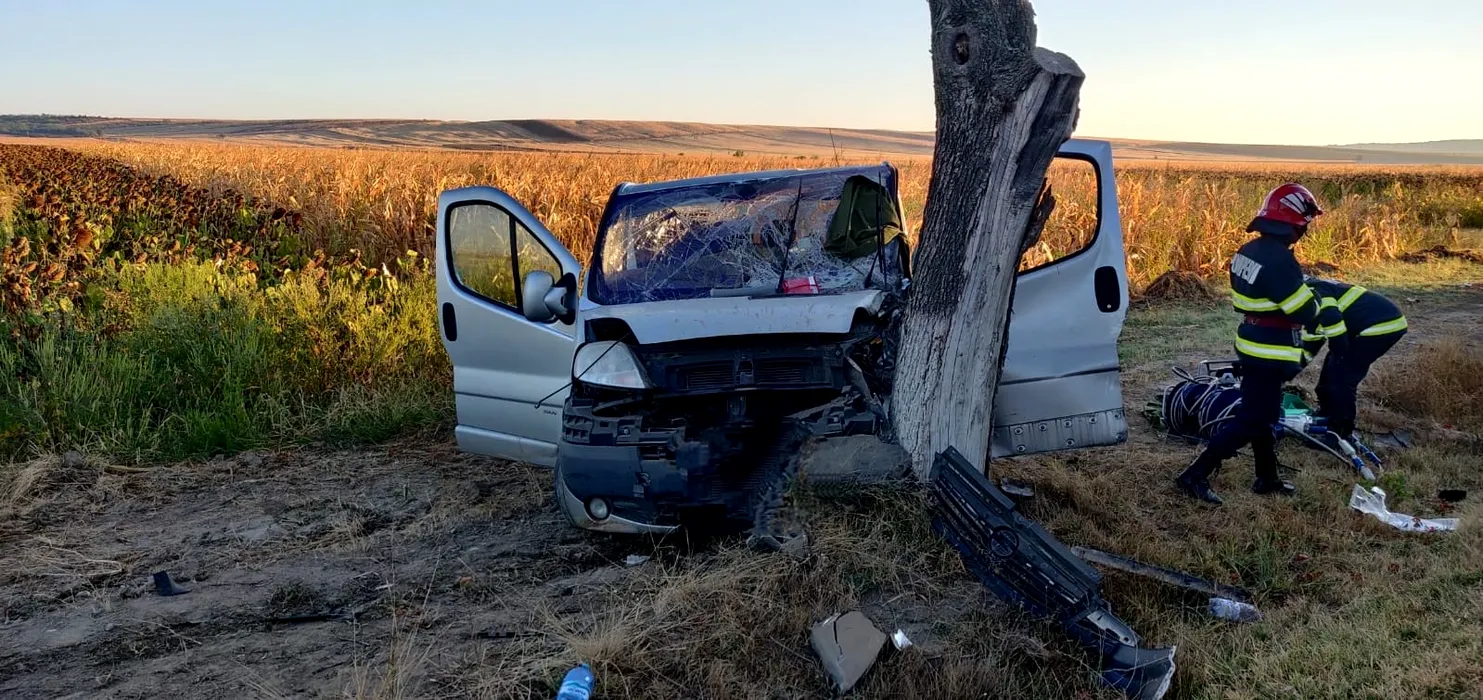 Accident grav în Olt. Un microbuz a intrat într-un copac. Cinci persoane au fost transportate la spital