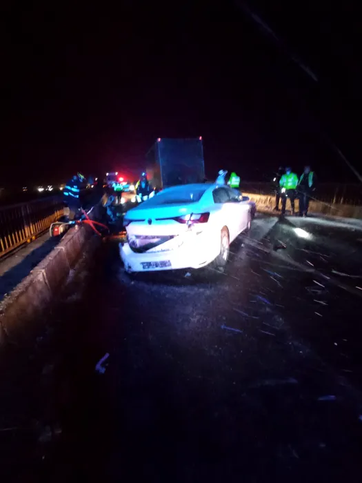 Accident grav în Sibiu. Un autoturism s-a făcut bucăţi după ce a lovit un camion