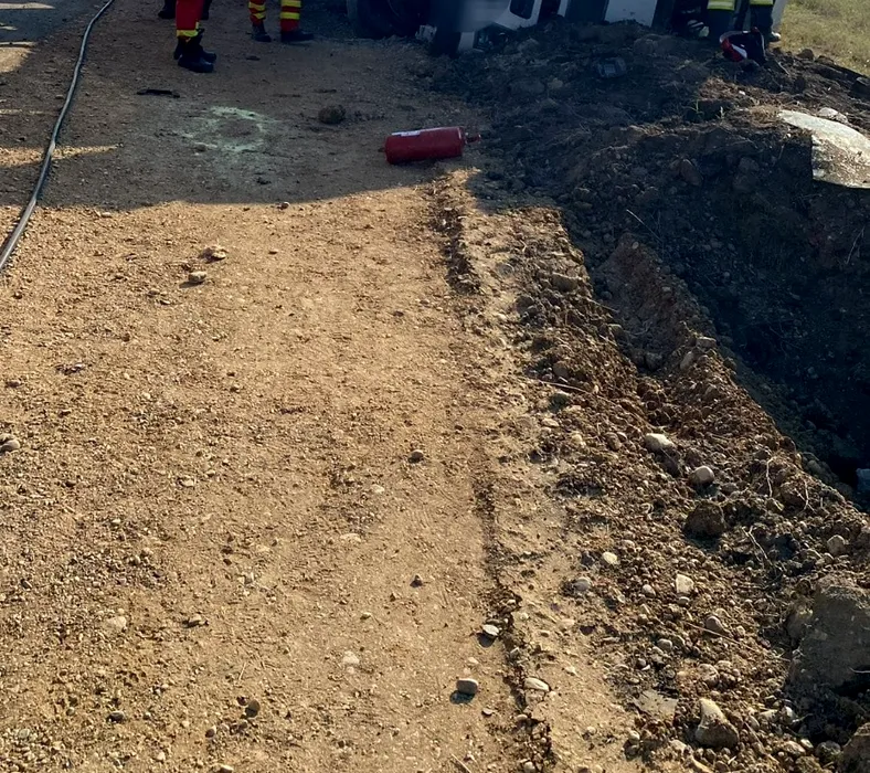 Accident grav în Teleorman: Un camion încărcat cu cereale s-a răsturnat. Șoferul a fost preluat de elicopterul SMURD