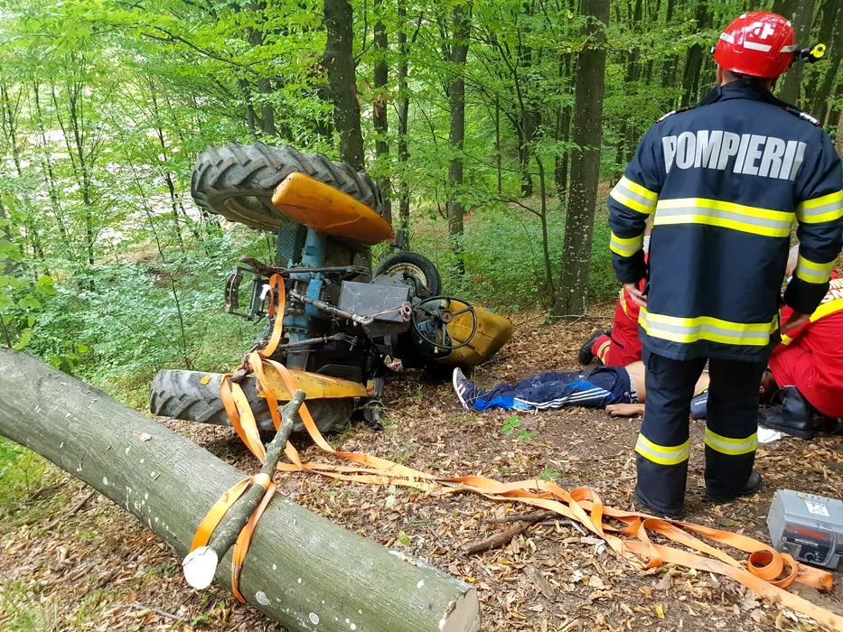 Accident grav în Vâlcea. Bărbat de 35 de ani, mort după ce s-a răsturnat cu tractorul