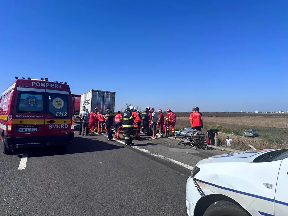 Accident GRAV pe A4, între Agigea și Constanța. 12 persoane au fost rănite, după impactul dintre un TIR și un microbuz