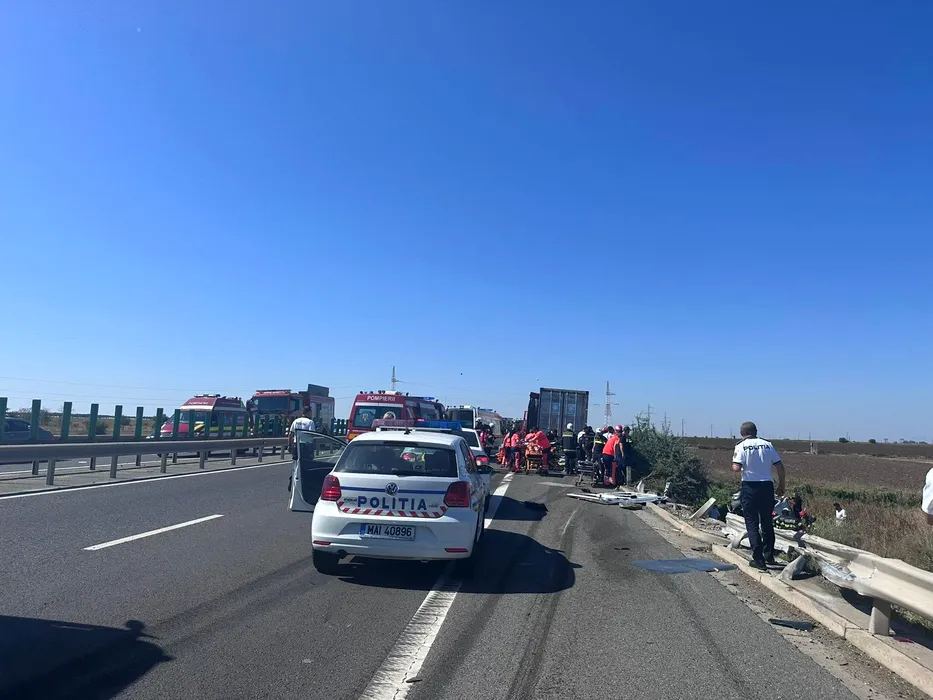 Accident GRAV pe A4, între Agigea și Constanța. 12 persoane au fost rănite, după impactul dintre un TIR și un microbuz