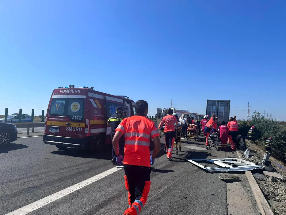 Accident GRAV pe A4, între Agigea și Constanța. 12 persoane au fost rănite, după impactul dintre un TIR și un microbuz