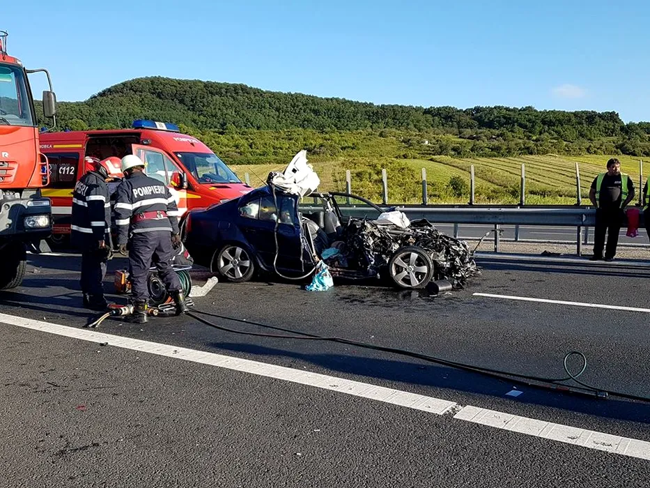 GALERIE FOTO: Accident grav pe Autostrada Deva – Sibiu între un autoturism și un tir. Trei persoane, printre care și o minoră, rănite. FOTO