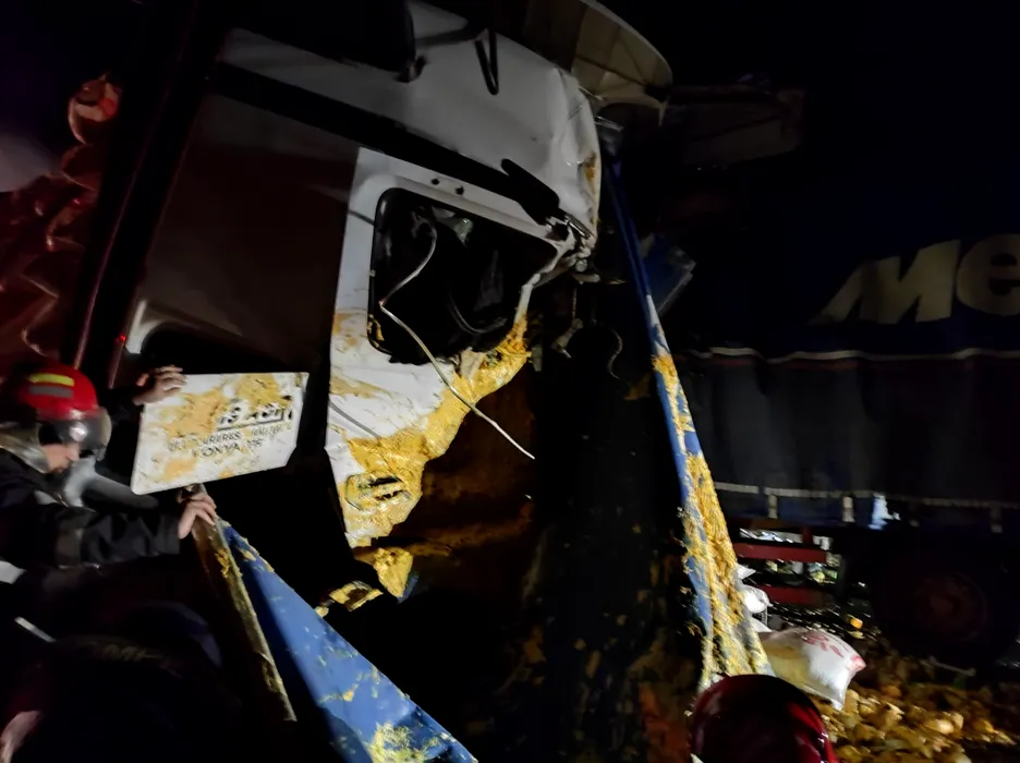 Accident grav pe Valea Oltului. Doi morți după ce două TIR-uri s-au ciocnit în dreptul localității Proieni
