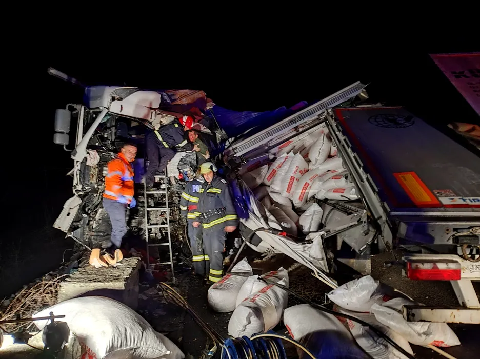 Accident grav pe Valea Oltului. Doi morți după ce două TIR-uri s-au ciocnit în dreptul localității Proieni