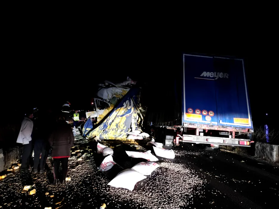 Accident grav pe Valea Oltului. Doi morți după ce două TIR-uri s-au ciocnit în dreptul localității Proieni