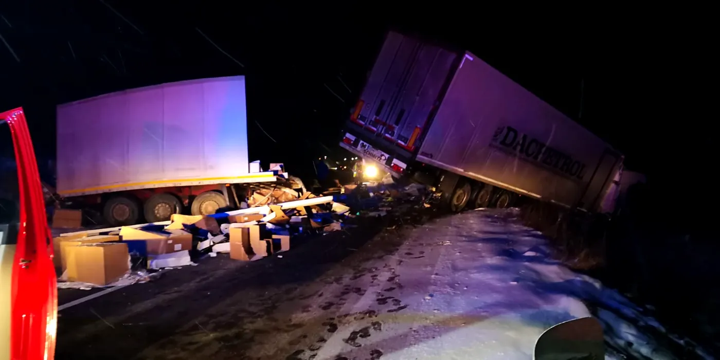 Accident grav! Un om a murit după ce două TIR-uri s-au ciocnit pe DN13 Brașov-Sighișoara (FOTO & VIDEO)