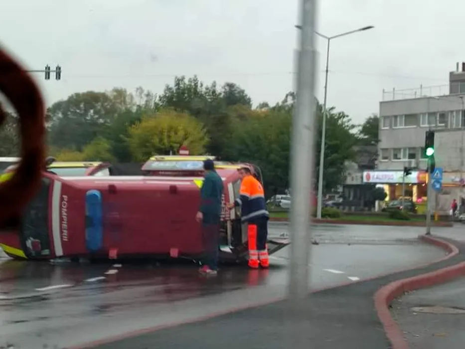 Accident în București. O autospecială SMURD s-a răsturnat după impactul cu un autoturism