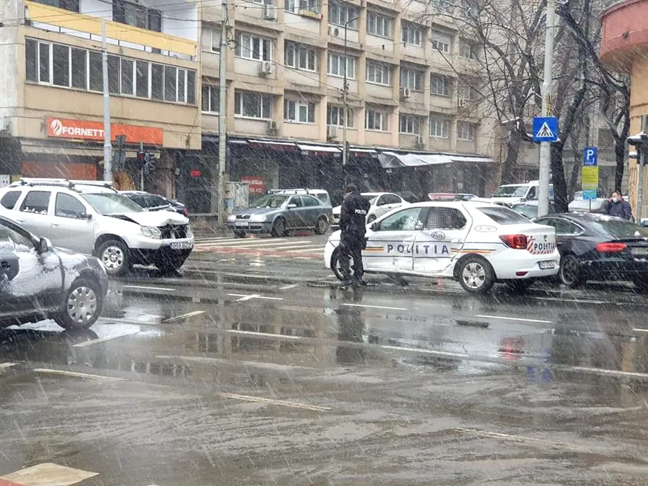 Accident în București. O mașină a Poliției a fost lovită de un SUV