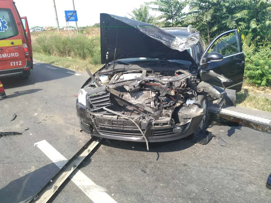 Accident în Giurgiu. Microbuz răsturnat după ce s-a ciocnit de o mașină. Bilanț: Un mort și 4 răniți