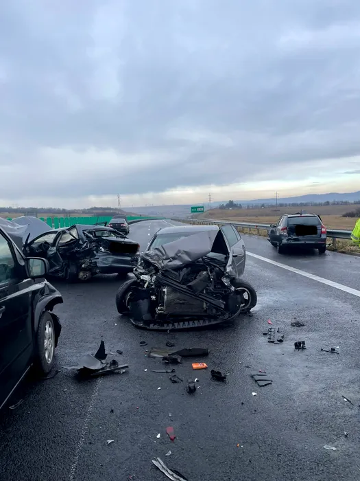 ACCIDENT în lanț pe A1, la Boița. 6 mașini implicate, 4 victime, trafic blocat!