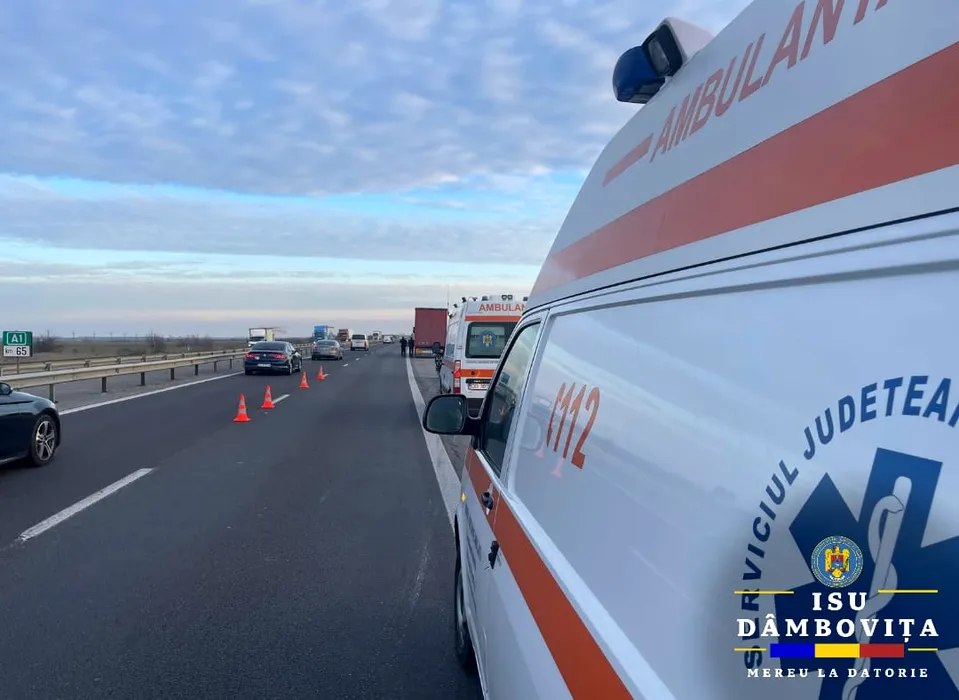 Accident în lanț pe A1. Șapte autovehicule au fost implicate, trei persoane au ajuns la spital