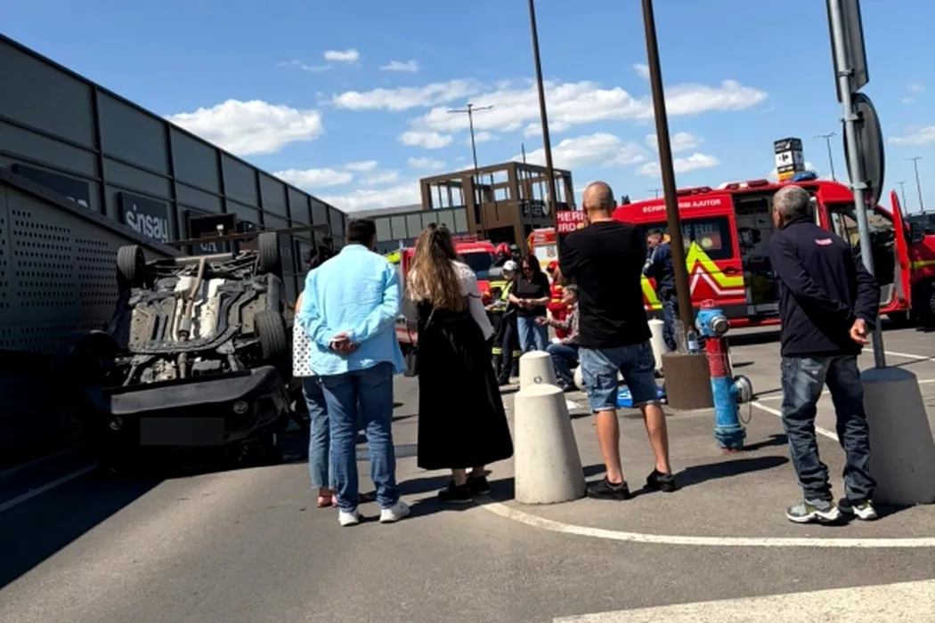 Accident în parcarea unui mall din Pitești. Un pensionar s-a răsturnat cu mașina și a rănit o femeie de 34 de ani