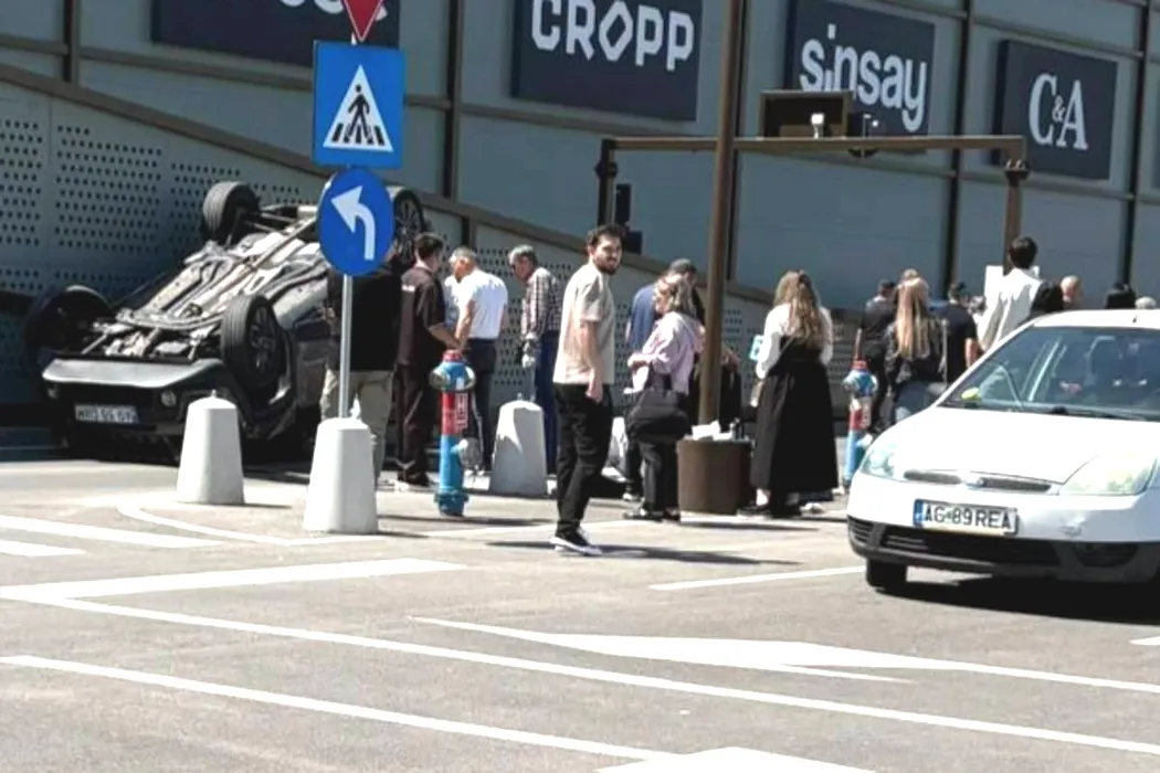 Accident în parcarea unui mall din Pitești. Un pensionar s-a răsturnat cu mașina și a rănit o femeie de 34 de ani