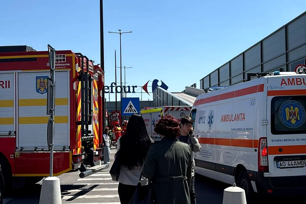 Accident în parcarea unui mall din Pitești. Un pensionar s-a răsturnat cu mașina și a rănit o femeie de 34 de ani