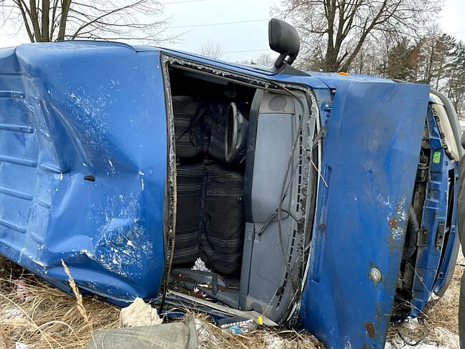 Accident în Suceava, după ce un microbuz s-a răsturnat pe calea ferată. În ce stare se află cele două persoane din vehicul / GALERIE FOTO