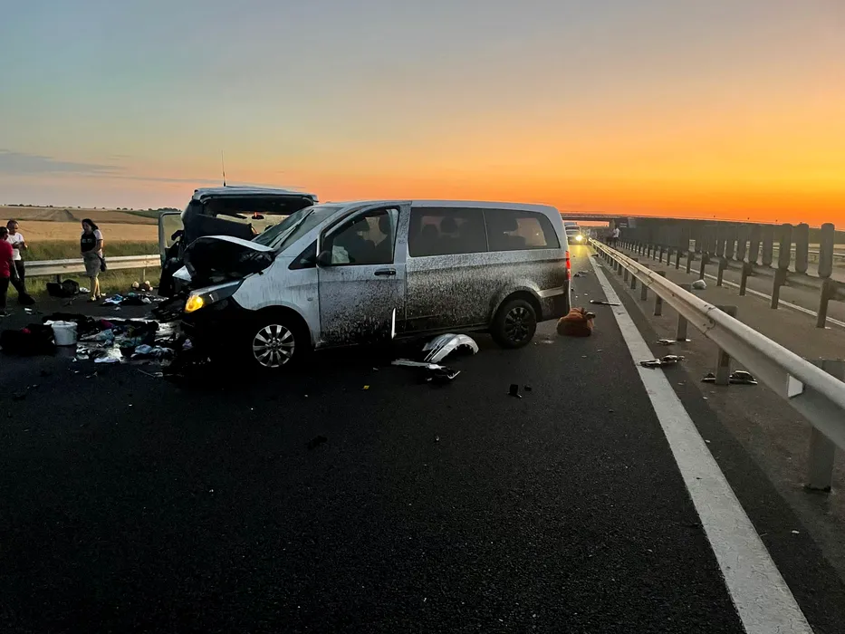 Accident între două microbuze pe A1, în județul Arad: 10 victime transportate la UPU