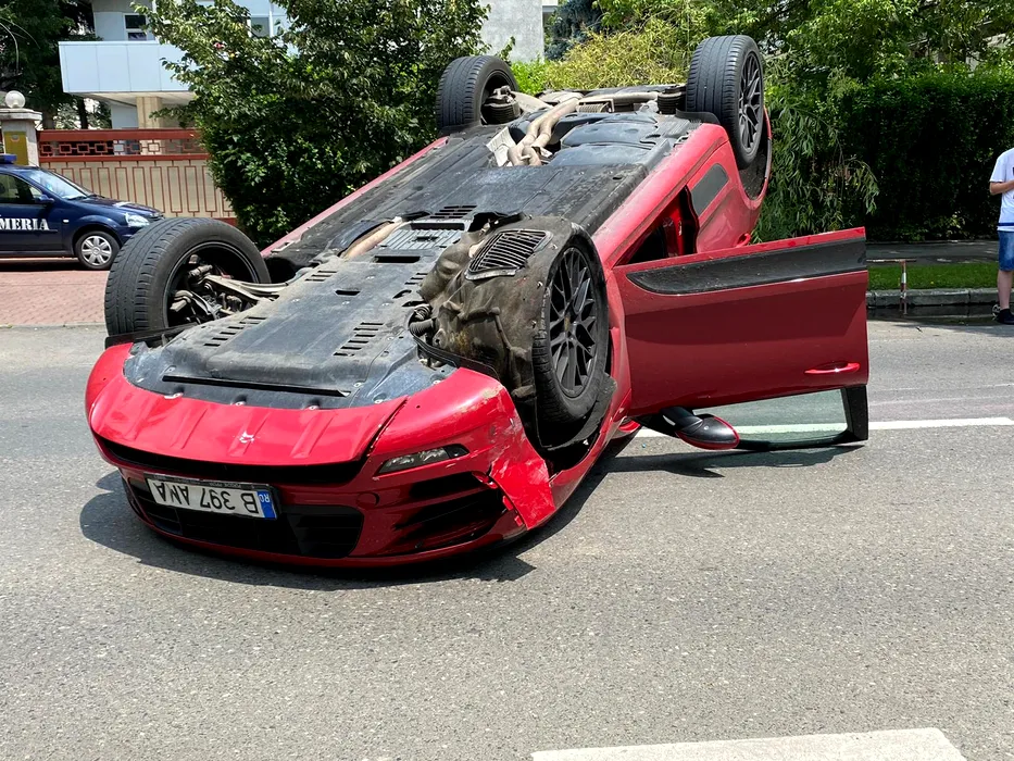ACCIDENT. Iubita unui afacerist celebru s-a răsturnat cu mașina de lux în nordul Capitalei. Imagini fabuloase