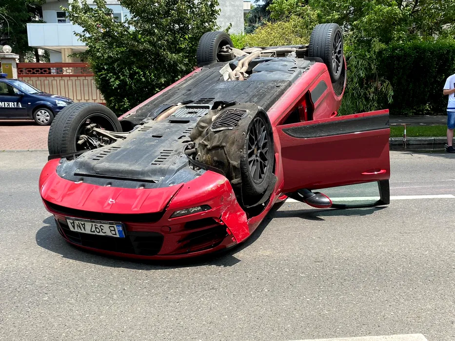 ACCIDENT. Iubita unui afacerist celebru s-a răsturnat cu mașina de lux în nordul Capitalei. Imagini fabuloase